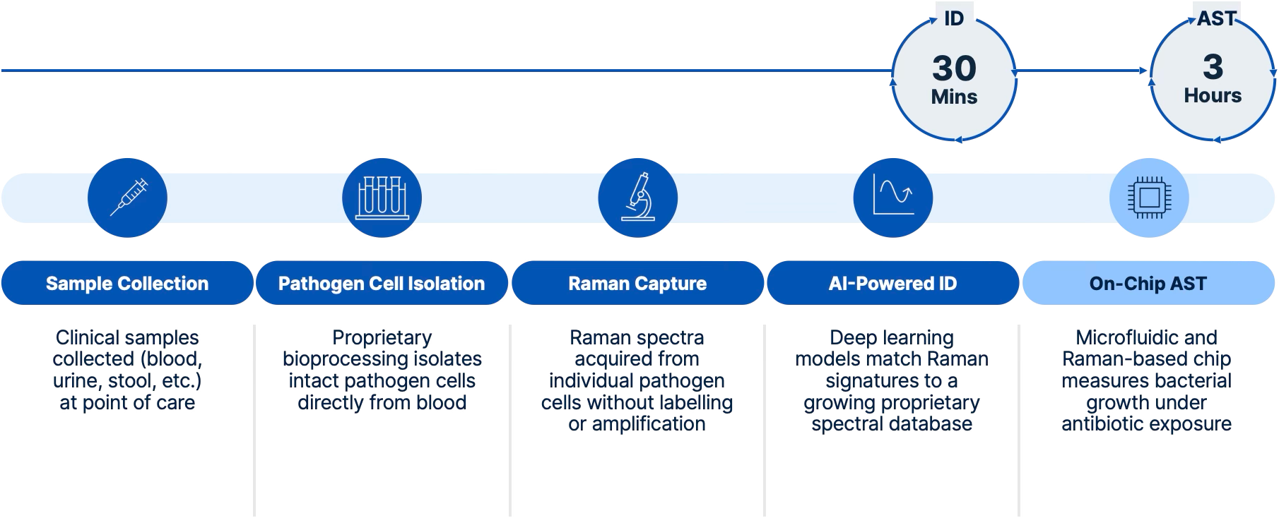 We plan to deliver broad pathogen ID in 30 minutes and phenotypic AST in 3 hours, enabling faster, targeted treatment decisions.